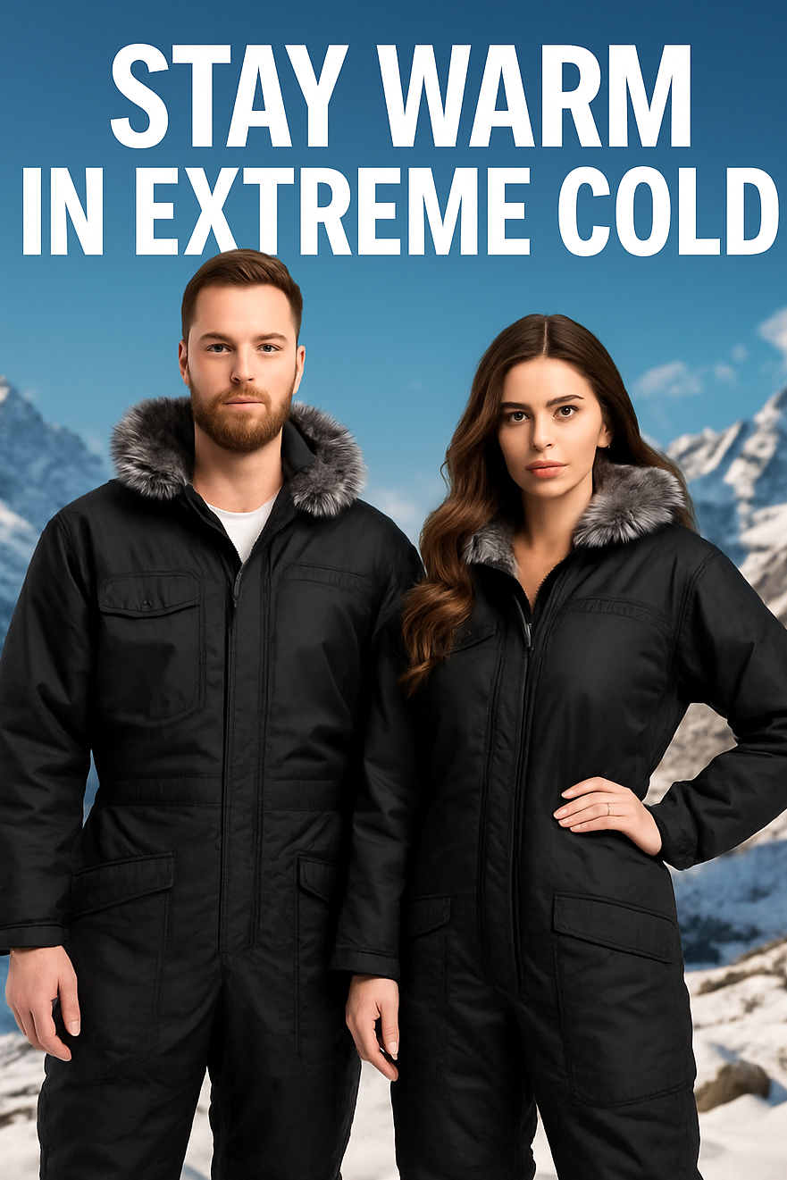 Insulated Snowsuit for Extreme Cold – Military One-Piece Ski Suit Black